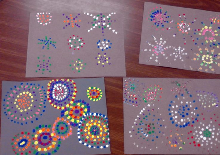 Make bursts of fireworks with black construction paper and cotton swabs painted with red, white, and blue paint. It’s a simple and lovely project, and kids like the messy, get-your-hands-dirty part.
