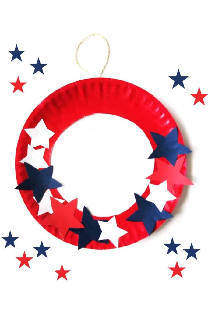 Gather a paper plates, white, red and blue paint, and star cutouts. Paint the wreath with red color, and attach blue and white stars using glue. Kids love painting and decorating, and it’s a great way to welcome guests.