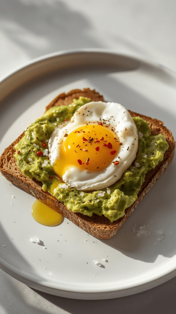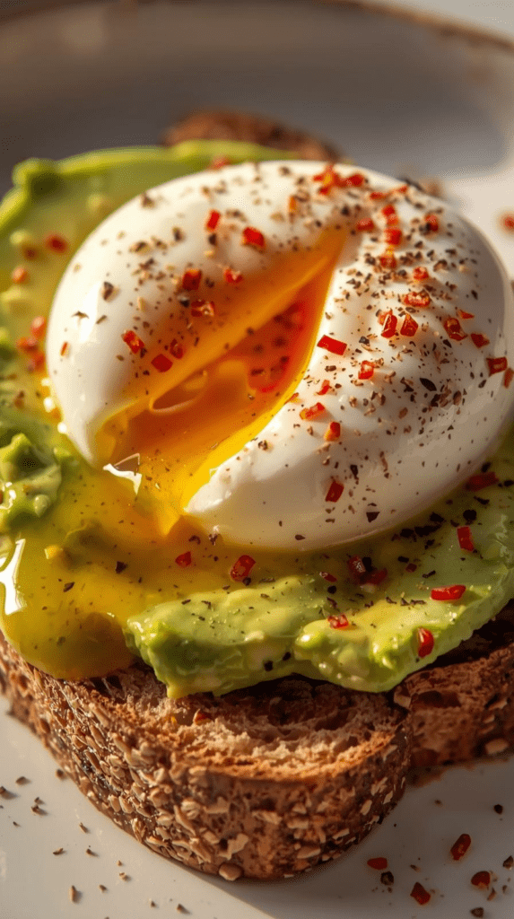 Flavor Profile: Rich, creamy avocado pairs perfectly with the eggs’ savory taste and the crunch of toasted bread. The red pepper flakes add a zesty kick, and the olive oil brings the whole dish to life. It’s a delectable, satisfying breakfast in under 10 minutes!