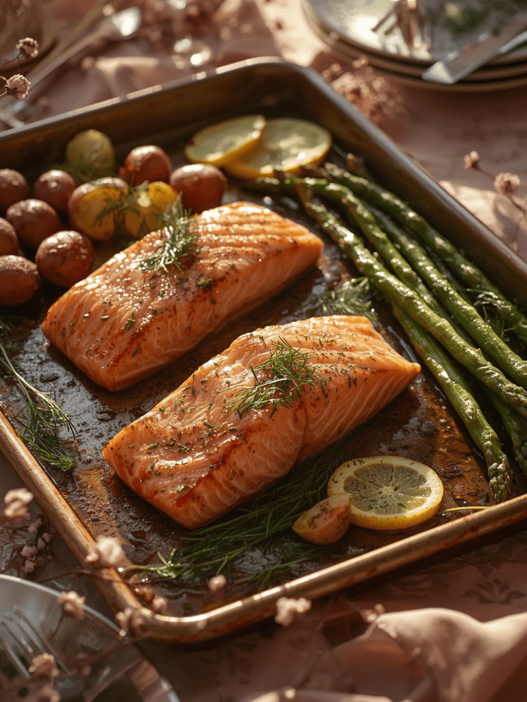 If you happen to be looking for a meal that is light, healthy, and hassle-free, then this sheet-pan salmon is the answer. Everything cooks on one pan, which means that you will have time to savor the evening instead of scraping a pile of dishes. The fresh herbs and tangy lemon in this recipe provide a bright and unique touch.