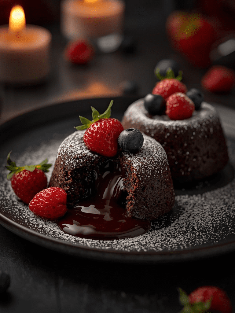 Finish off your evening on a sweet note with these chocolate lava cakes oozing with gooey goodness. They’re the ultimate Valentine’s dessert: decadent, rich, and so romantic.