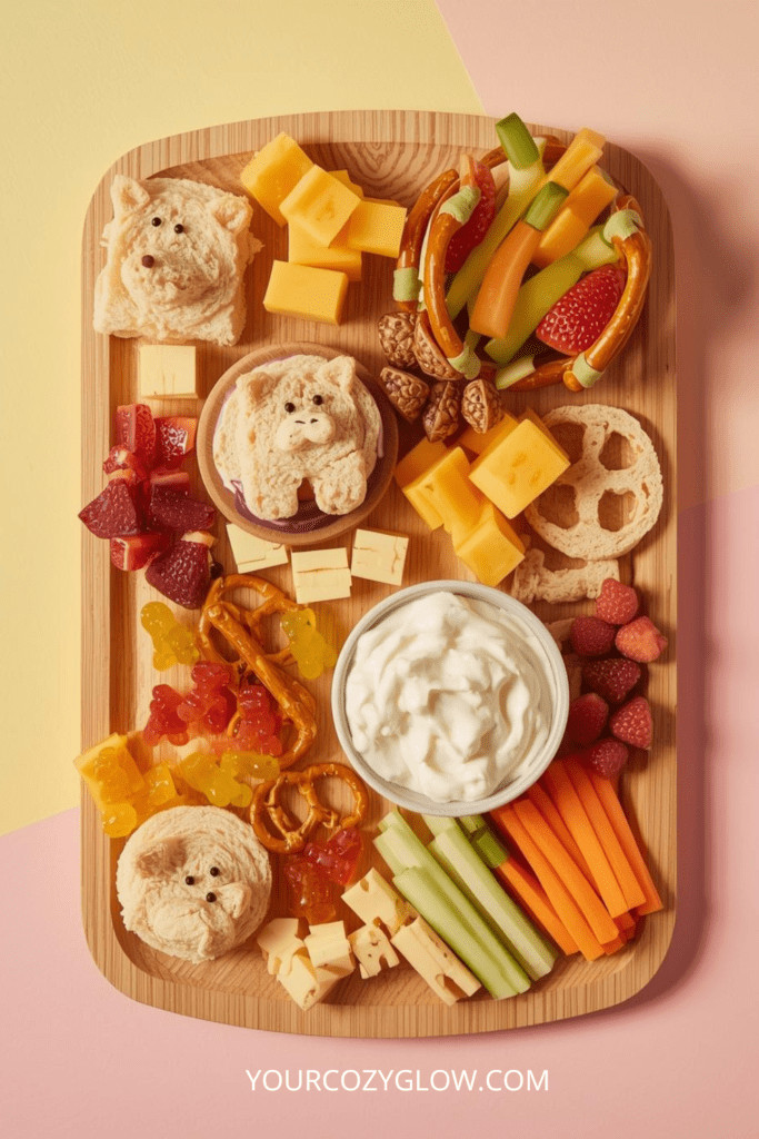 A kids grazing board is part food, part entertainment. Children love variety and choice, so small portions and fun shapes keep them engaged. The board should feel cheerful — bright colors, easy-to-grab items, soft textures, and a balance of healthy snacks + little treats.