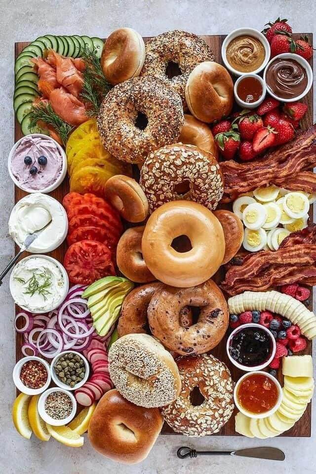 Guests can create their perfect bagel with options like cream cheese, fresh fruit, smoked salmon, bacon, avocado, and flavored spreads.