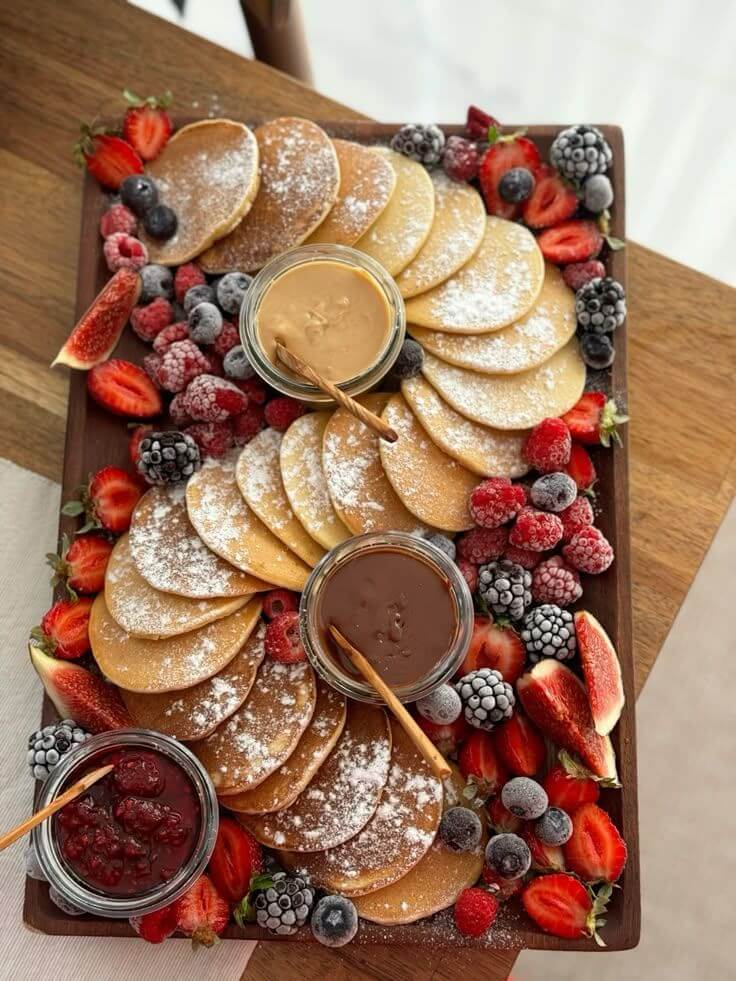 Serve light and airy pancakes with a range of delicious toppings, including peanut butter drizzle, chocolate syrup, fruit preserves, and fresh berries.